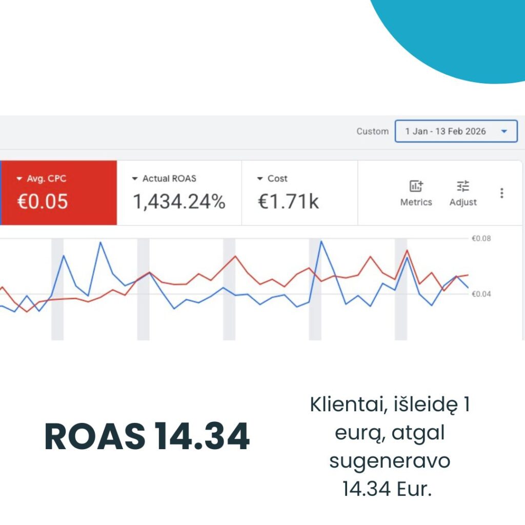 • Pasauliniu mastu gera Google Ads reklama laikoma nuo ROAS 4
